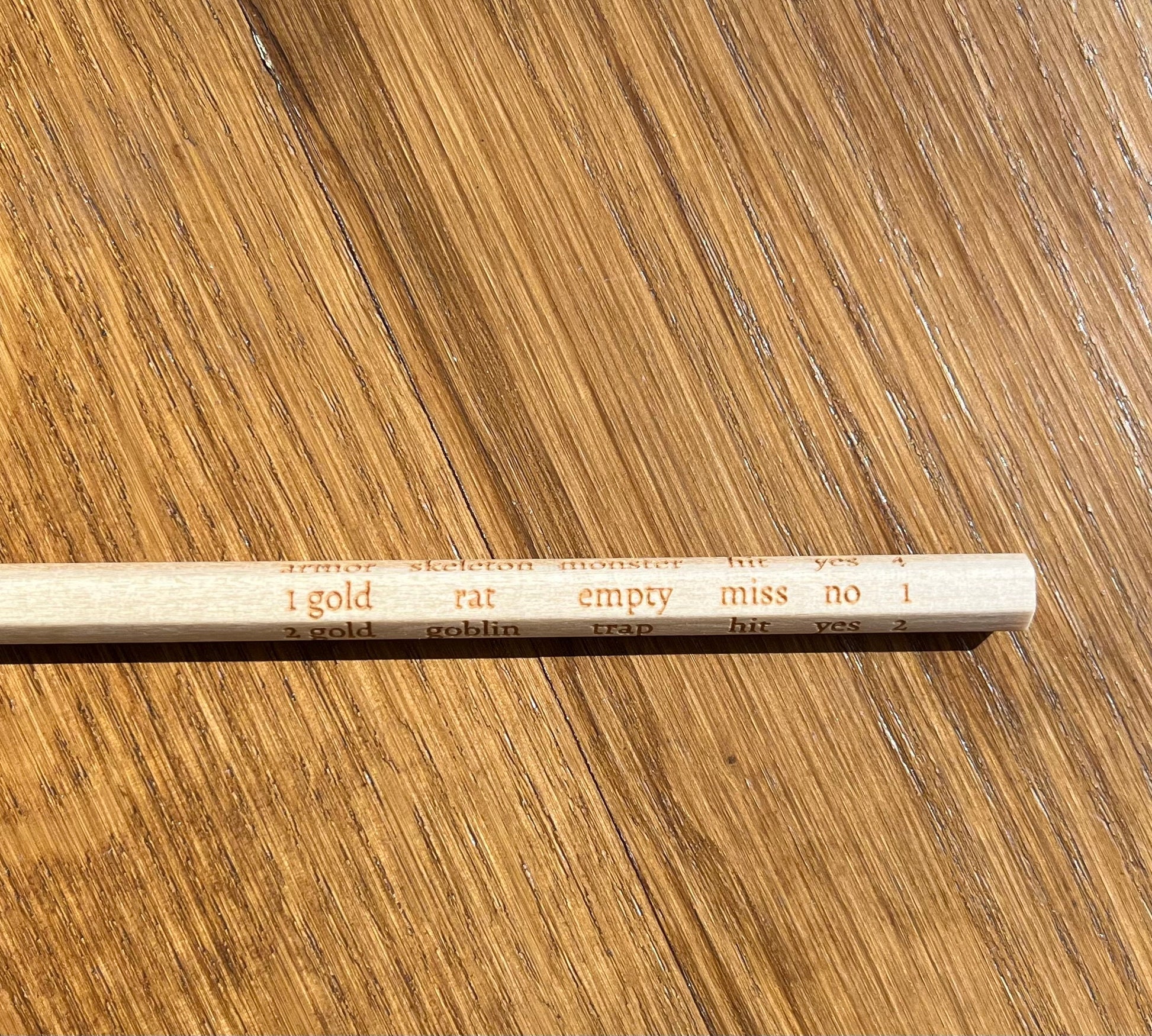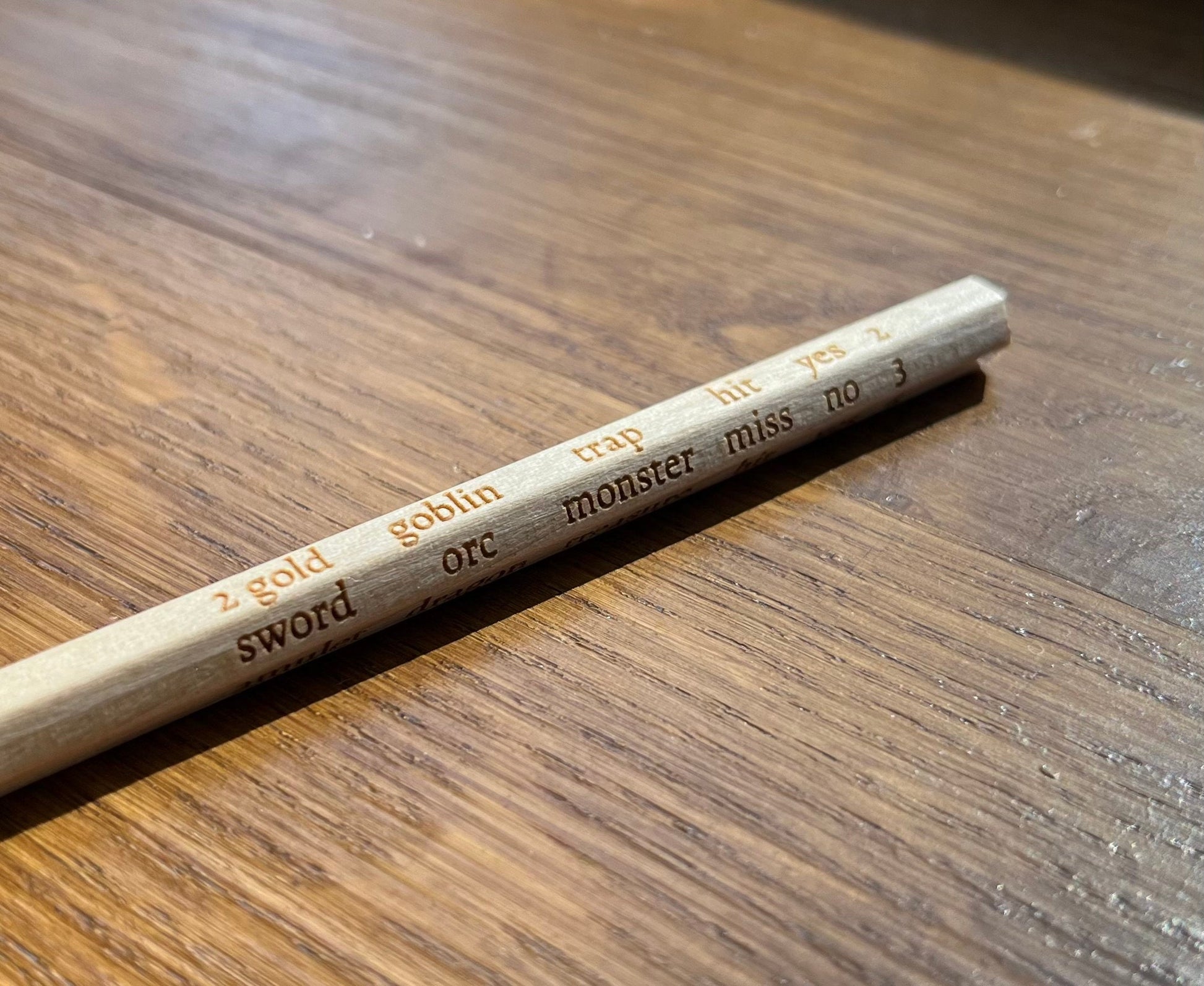 Looking for a one-of-a-kind writing instrument that brings a touch of adventure to your everyday writing tasks? Look no further than Dungeon Crawl Pencils! These unique pencils feature an RPG engraved on them, complete with six random generators based on the six sides of a d6 die.
