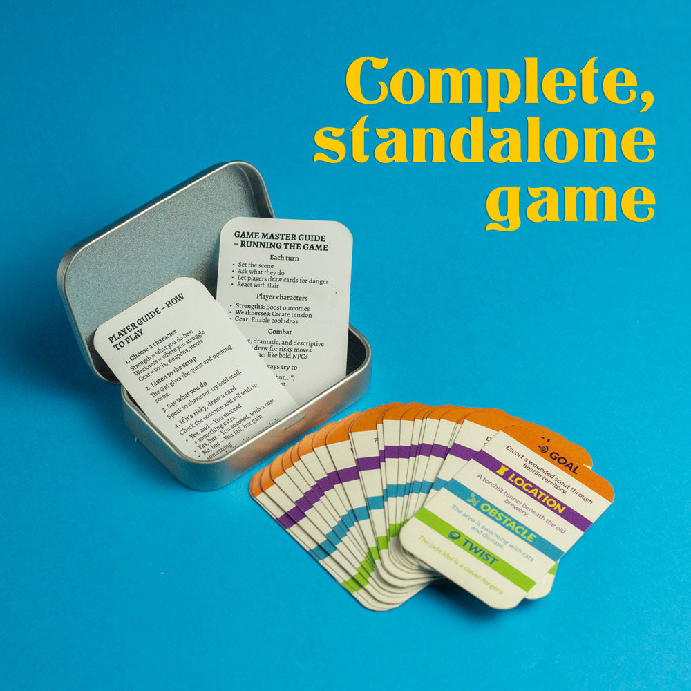 Fantastic little rpg, clear and simple rules, great for no prep games,.. lovely quality cards and all in a nice little tin that fits in your pocket, what's not too like!