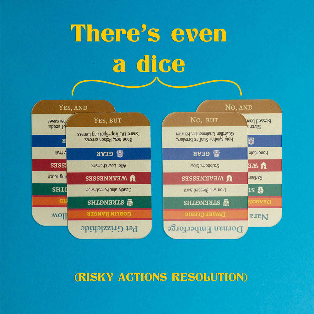 - Upside down on the same side: action outcomes for risky moves (Yes/And, Yes/But, No/But, No/And)