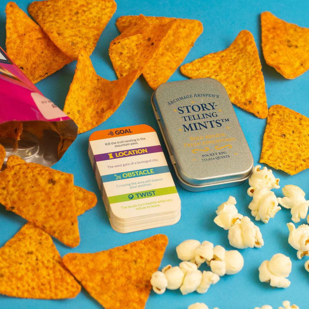 Storytelling Mints is a pocket-sized, standalone storytelling RPG that fits in your palm and fires up your imagination. Whether you're hanging out with friends, meeting strangers at a con, or just looking for a spontaneous adventure, this game is always ready—no extra books, dice, or components required.